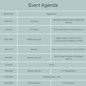 Join us for a high-impact expo that places you at the centre of the UK’s advanced connectivity research ecosystem. Designed for industry leaders and investors, this event, in partnership with techUK, showcases groundbreaking research and innovations. Engage the Federated Telecoms Hubs’ network of 35 UK universities – including FTH’s leading institutions the University of Bristol, University of Cambridge, Imperial, and the University of Oxford.